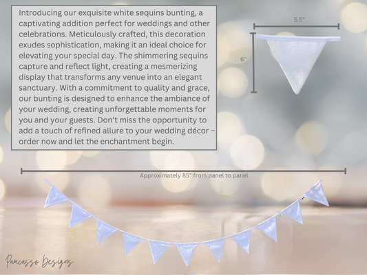 White Wedding Tossed Sequins Bunting, Chic Bling Banner, Elegant Decor