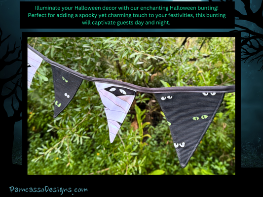 Spooky Glow-in-the-Dark Eyes Halloween Bunting - Mummy & Black Fabric Garland Wall Hanging
