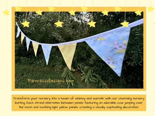 Whimsical Cow and Moon Nursery Bunting with Light Yellow Panels - Adorable Baby Room Decor - Gender Neutral Nursey Banner Decoration