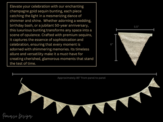 Bunting | Champagne Gold Tossed Sequins Bunting, Golden Anniversary, Elegant Decor, Party Flag
