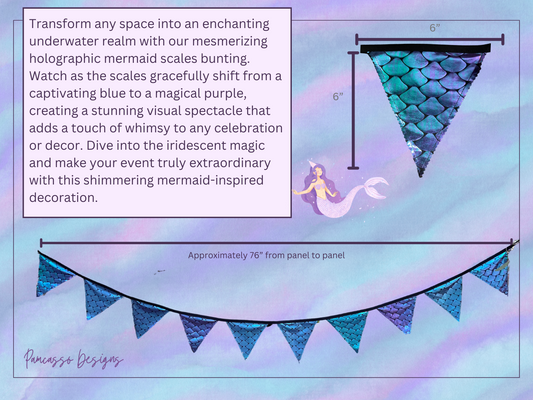 Bunting | Holographic Mermaid Scales Bunting, Birthday Party Flag