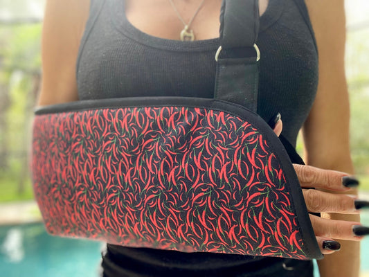 Show your foodie style with a fun and padded arm sling from Fracture Fashionz!