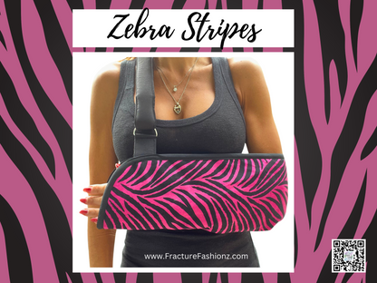 Rock your recovery with this playful pink zebra stripes arm sling by Fracture Fashionz. Padded for comfort and boasting a vibrant, fun print, this sling adds a touch of style to your healing process. Who says recovering can't be fun?