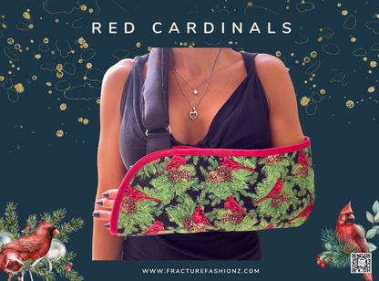 Get festive this holiday season with the Red Cardinals Arm Sling by Fracture Fashionz! This padded arm sling features charming red cardinals perched on pine leaves, adding a touch of whimsy to your recovery. Embrace the holiday spirit while resting comfortably - who says healing can't be fun?!